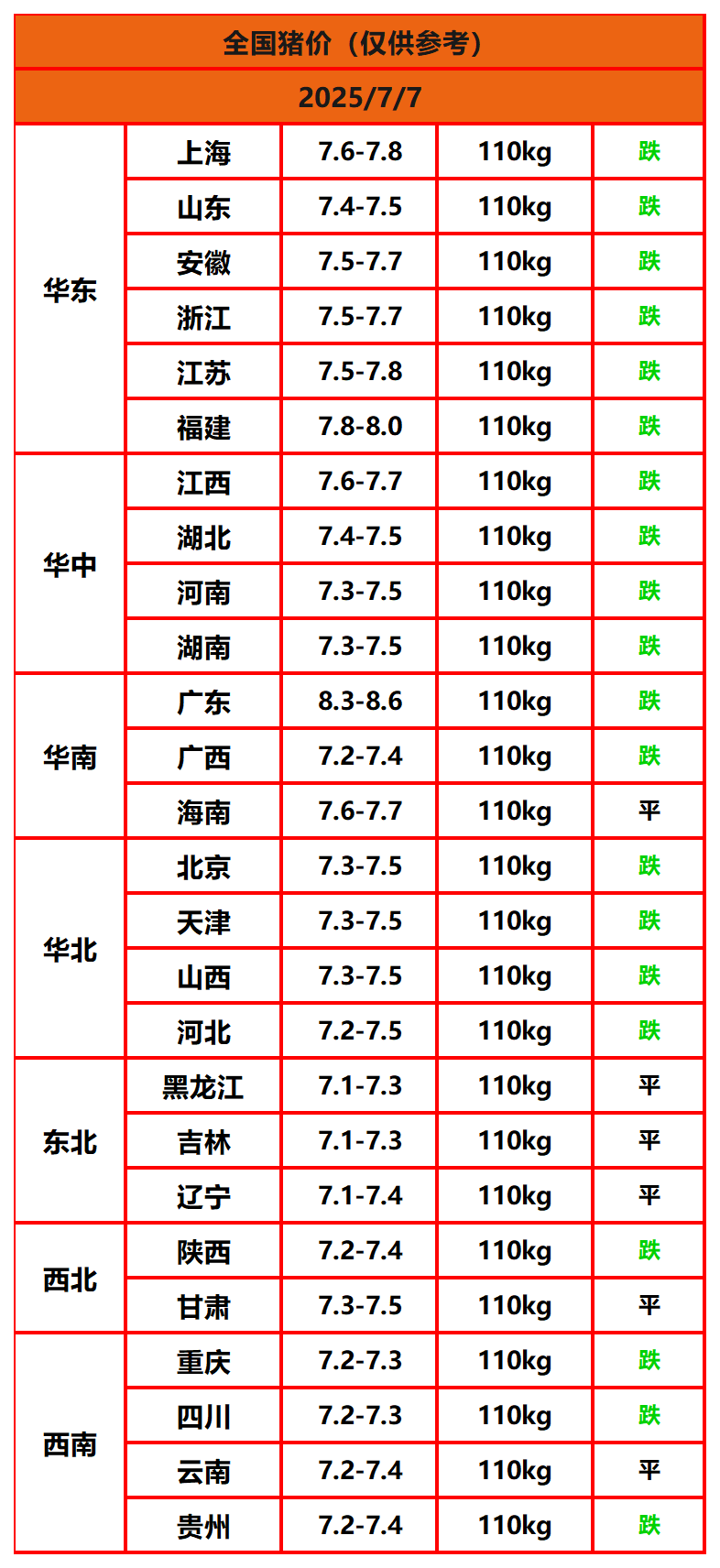 今日猪价 | 2025年7月7日全国猪价行情一览表!