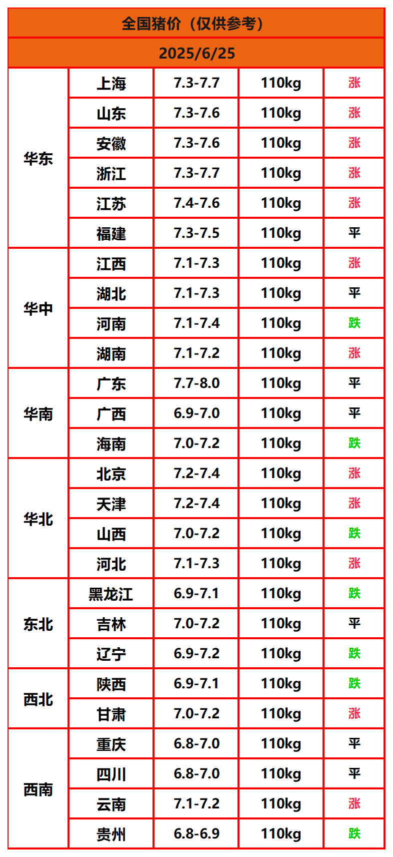 2025年6月25日猪价,今日全国猪价行情走势:12涨7平7跌。