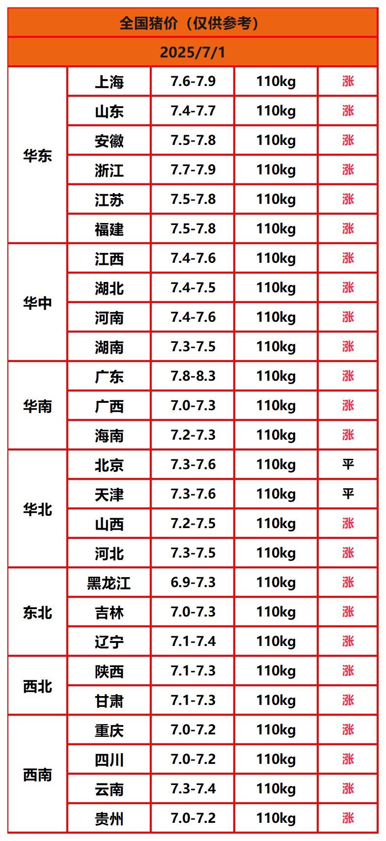 今日猪价 | 2025年7月1日全国猪价行情一览表!